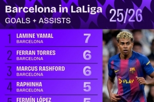 体育资讯11月3日讯 据Squawka统计,巴萨本赛季5名球员联赛参与进球5+,五大联赛首队。 巴萨本赛季联赛参与进球榜: 亚马尔——7 费兰——6 拉什福德——6 拉菲尼亚——5 费尔明——5 莱万——4 奥尔莫——3 佩德里——3 阿劳霍——2 德容——2