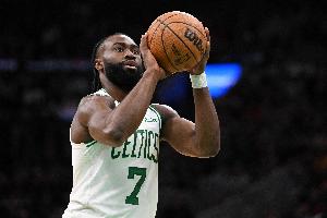 体育资讯11月4日讯 NBA常规赛,凯尔特人半场46-36领先爵士。 上半场两队在三分线外频频打铁,爵士全队15投3中,命中率为20%。 而绿军继续魔球打法,半场疯狂出手三分28次,投进7球,命中率为25%。