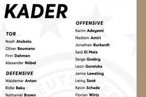 体育资讯11月06日讯 德国名单:维尔茨、沃尔特马德领衔,萨内回归,19岁马拉首入选 德国名单 门将:阿图伯鲁、鲍曼、达门、努贝尔 后卫:安东、巴库、N·布朗、基米希、恩梅查、帕夫洛维奇、劳姆、施洛特贝克、塔、佳夫 中前场:阿德耶米、阿米里、伯卡特、马拉、格纳布里、格雷茨卡、勒威林、萨内、沙德、维尔茨、沃尔特马德