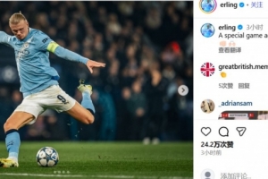 体育资讯11月7日讯 欧冠联赛阶段第4轮比赛,曼城以4-1的比分大胜多特。本场比赛,曼城射手哈兰德面对旧主多特破门,帮助球队取得一场重要的胜利。 在社交媒体上,哈兰德晒出了自己的赛场照,并写道:一场面对特别俱乐部的特别比赛。