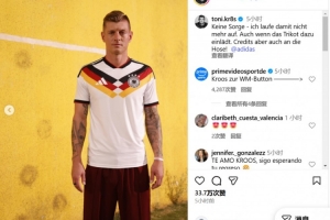 体育资讯11月7日讯 德国足坛传奇克罗斯已经宣布退役,但他在社交媒体上依然非常活跃。 在社交媒体上,克罗斯晒出了自己身披德国2026年世界杯球衣照片,并写道:不必担心,我再也不会穿着它奔跑了,尽管这件球衣确实很诱人。顺便说一句,这件球裤也不错。