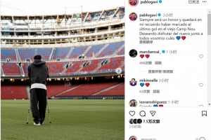 体育资讯11月7日讯 巴萨中场加维更新社媒动态,晒出身处诺坎普球场的照片。 加维社媒写道:“能攻入老诺坎普球场的最后一球,永远是我的荣幸,也将永远铭刻在我的记忆中。期待与所有巴萨球迷一同享受新球场的时光。” 加维在8月份的训练中受伤,接受右膝内侧半月板手术,因此长期缺席。