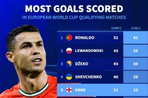 体育资讯11月17日讯 德国转会市场列出了欧洲世预赛历史射手榜,C罗41球居首,莱万33球次席,哈兰德21球排在第7位。 欧洲世预赛历史射手榜: C罗(葡萄牙)——52场41球 莱万多夫斯基(波兰)——43场33球 哲科(波黑)——43场30球 舍甫琴科(乌克兰)——40场26球 凯恩(英格兰)——21场23球 德佩(荷兰)——22场23球 哈兰德(挪威)——14场21球 卢卡库(比利时)——18场19球 米特洛维奇(塞尔维亚)——25场19球 保罗塔(葡萄牙)——25场19球