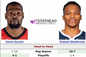 大哥二弟相遇!杜兰特常规赛生涯面对威少7胜10负 季后赛4胜1负