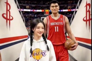 小姐姐用AI制作在球馆与那些年追过的NBA中锋合影:姚鲨魔约