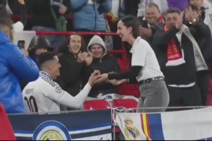 一位皇马球迷在安菲尔德球场向女友求婚,女友答应了 🥰